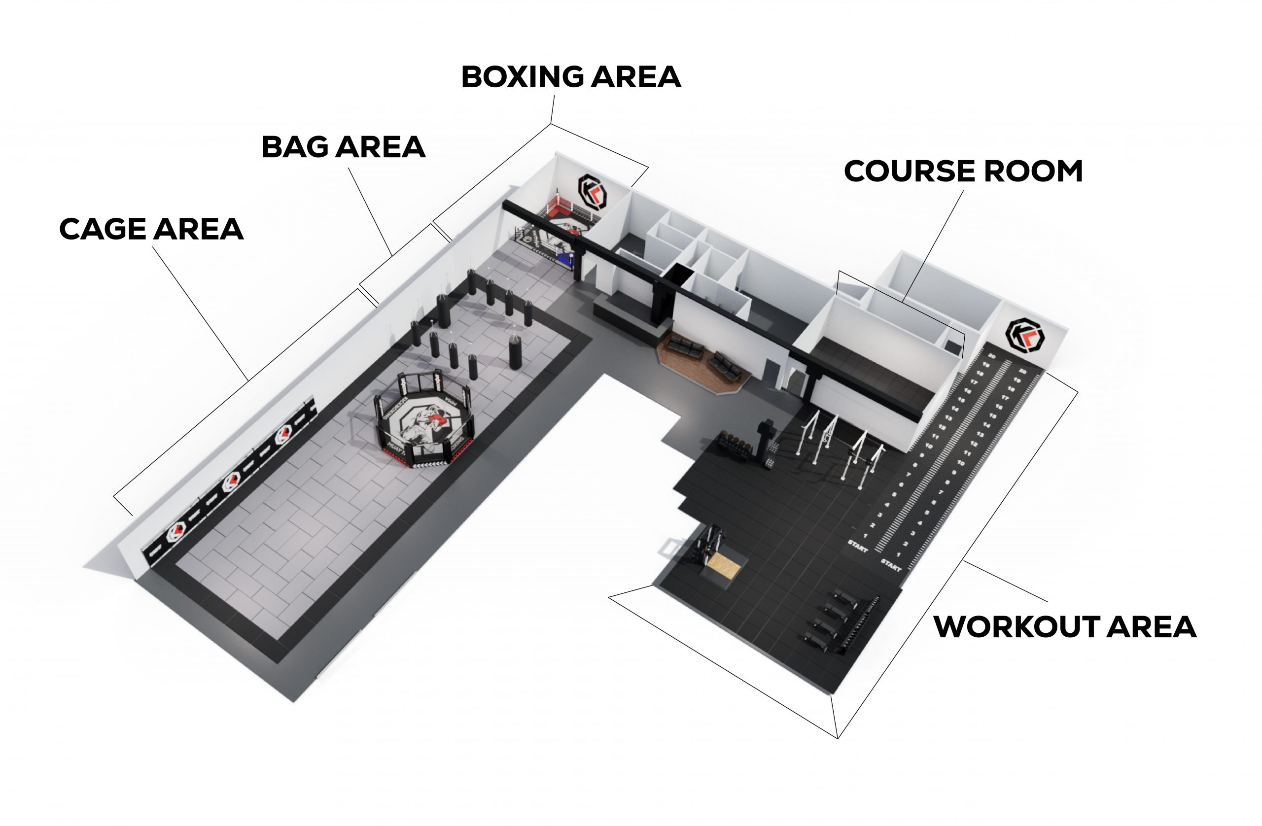 Links seht ihr die verschiedenen Trainingsbereiche. Diese sind auch immer im Kursplan mit angegeben. Findet euch bitte 5 Minuten vor Kursbeginn auf der jeweiligen Trainingsfläche, fertig umgezogen (Bandagen gewickelt etc.), ein. Wollt ihr das „Open Gym“ nutzen, prüft bitte vorher welche Flächen nicht von einem Kurs belegt sind.